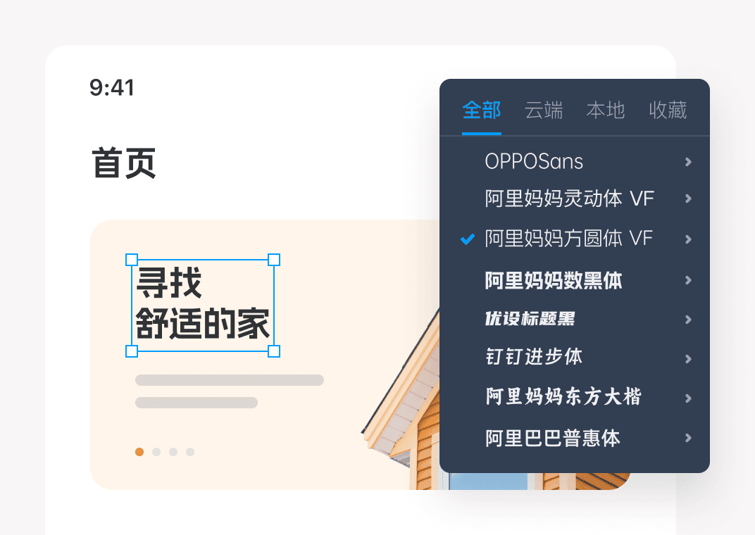 支持官方云端字體,也可以自由上傳、共享字體文件,可收藏字體快速復用,輕松管理團隊字體資產。