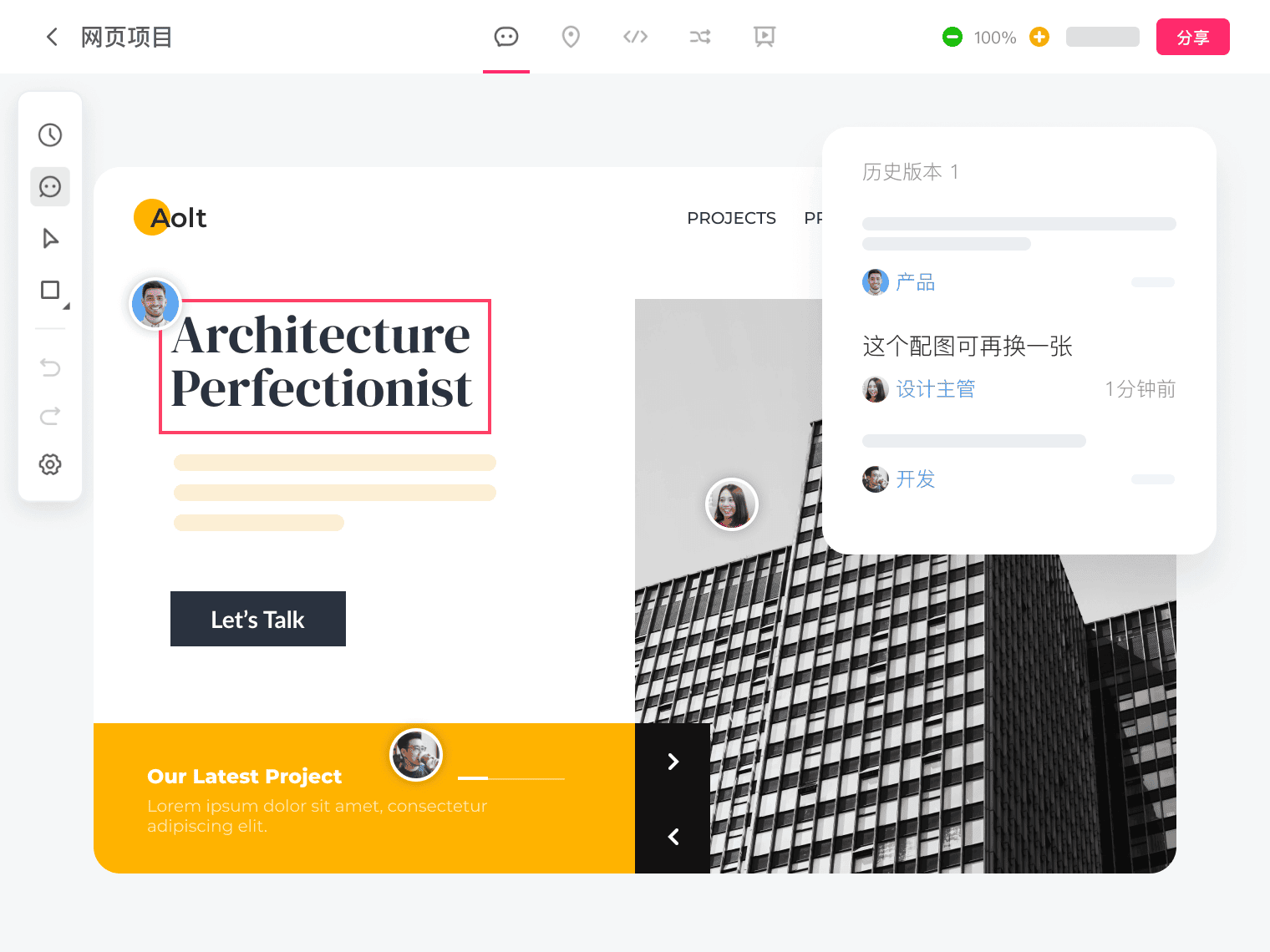 文檔、原型、設(shè)計稿均可在線評審!通過評論、定稿、開發(fā)模式,產(chǎn)研團(tuán)隊(duì)所有成員可以一起驗(yàn)收,減少溝通成本,高效達(dá)成目標(biāo)。