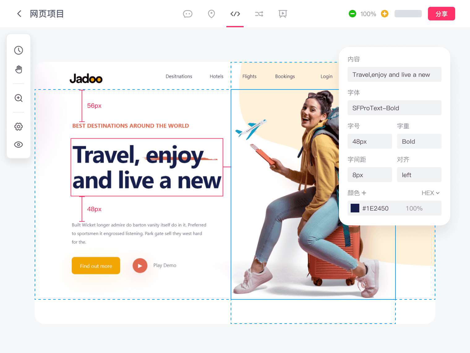 支持15種動畫效果、8種手勢,輕松拖拽即可完成頁面跳轉(zhuǎn)、彈窗、滾動等多種交互場景。交互可復(fù)制,還支持離線演示,在設(shè)計交付工具中做到了極致!