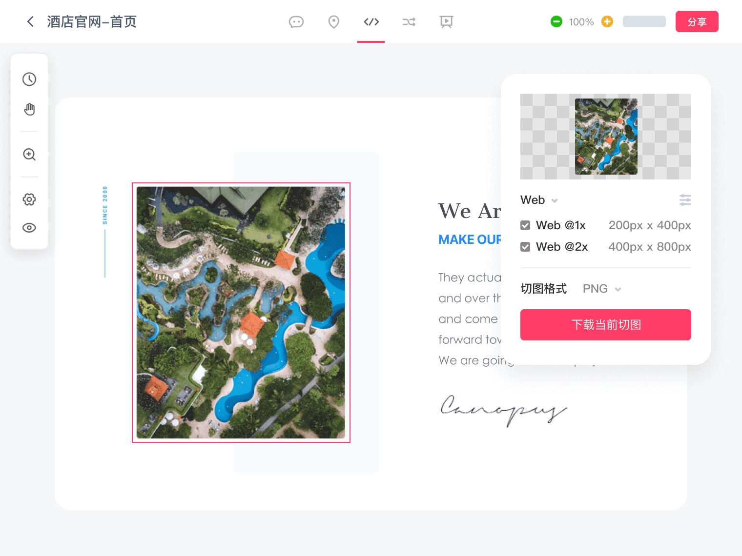 一鍵下載全部切圖,可自動換算不同平臺尺寸,前端工程師還可自定義切圖尺寸。