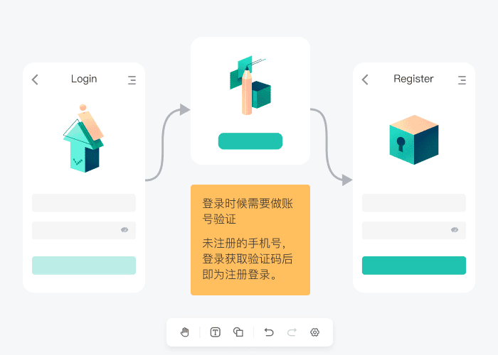 支持在全貌畫布中添加文字便簽及流程圖,輕松創(chuàng)建設(shè)計稿之間的連接及撰寫說明,展示邏輯更清晰。