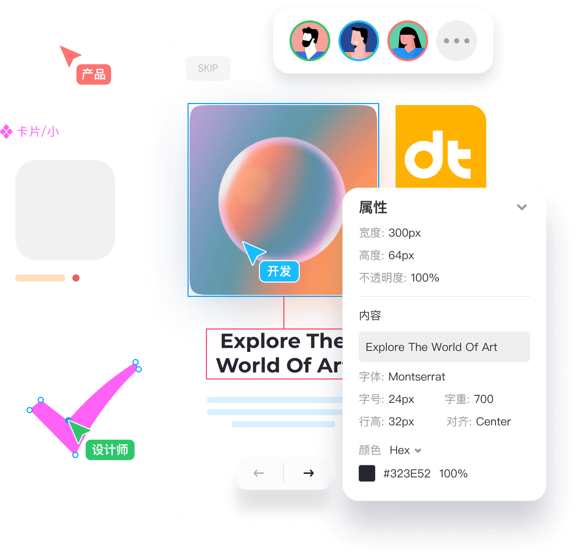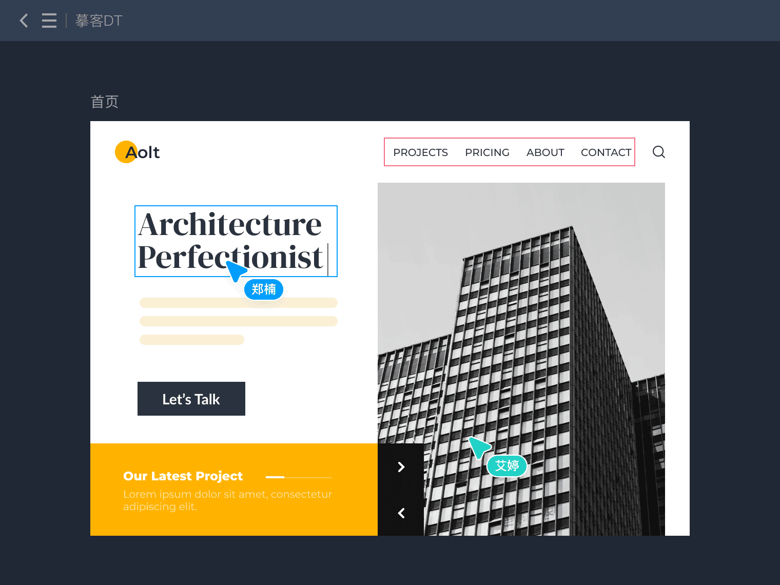 摹客DT作為web端工具,基于瀏覽器的特性可以輕松搞定多人協作難題。在摹客DT,多個團隊成員可以同時編輯同一項目同一頁面,協作效率大大提升。