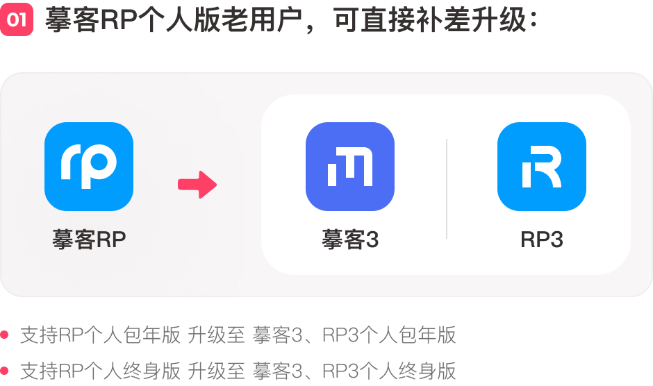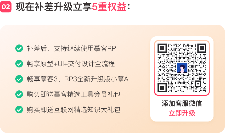 如果您僅需要簡單快速手動繪制原型設計,依然可以選擇摹客RP(個人版低至5折,創業版6折); 對于摹客RP老用戶,我們還有以下福利: