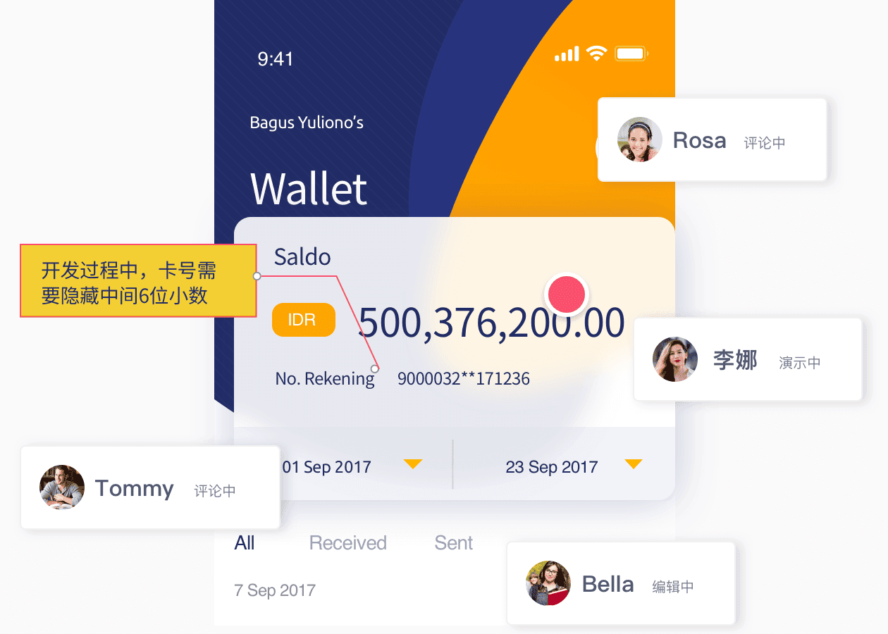通過摹客平臺完成金融業務系統和客戶端原型設計后,基于其柔性工作流模式,內部審核流程可無縫接入,在線添加評論和批注進行說明。并可通過演示鏈接查看說明和上手操作,更好地理解系統功能,降低溝通成本。